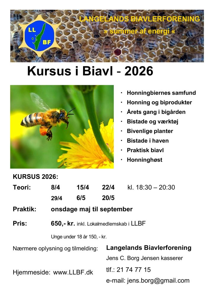 Alle der tidligere har været deltagere i kurset og som stadigvæk er medlem af Langelands Biavlerforening kan deltage gratis – husk tilmelding.