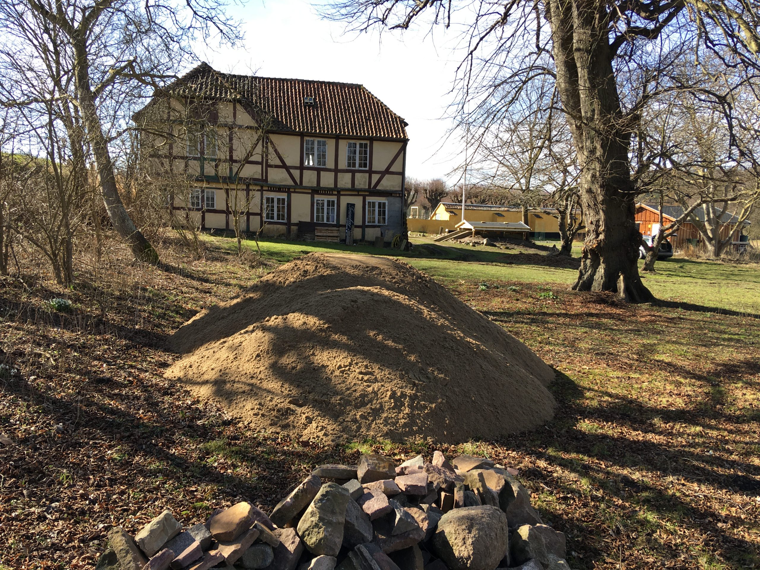 Havegruppen har fået leveret grus til jordforbedring af de eksisterende bede syd for orangeriet.